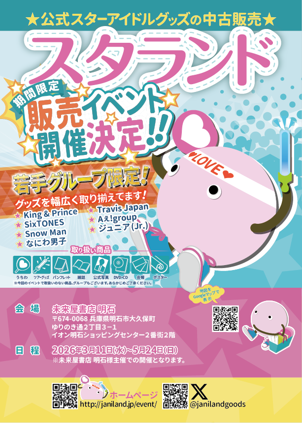 【イベント告知(若手グループのみ)】未来屋書店 明石(兵庫県明石市)での期間限定販売(2026年3月11日~5月24日)