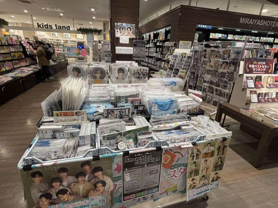 最終更新日: 2026.01.15【イベント】関西地方(大阪・兵庫・京都・滋賀・奈良・和歌山)開催中&まもなく開催の販売イベント 【イベント告知】未来屋書店 大阪ドームシティ店(大阪市西区)での期間限定販売(2026年1月15日~1月22日)★Snow Manのみ 未来屋書店 大阪ドームシティ店(大阪市)でのジャニーズグッズ販売イベントが決定いたしました♪ 2026年1月15日(木)から1月22日(木)までの8日間、未来屋書店 大阪ドームシティ店様主催での開催となります。 Snow […]続きを読む