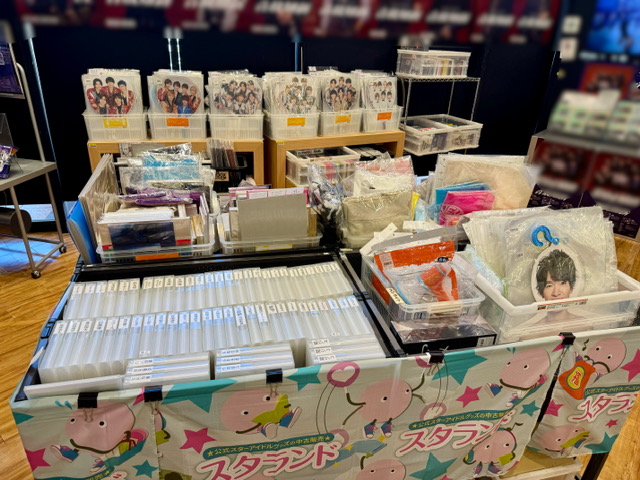 大阪にある心斎橋本店、名古屋店の直営店には、広い店内にところ狭しと、あらゆるジャニーズグッズを取り揃えています。