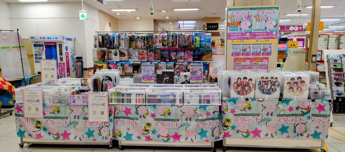大阪にある心斎橋本店、名古屋店の直営店には、広い店内にところ狭しと、あらゆるジャニーズグッズを取り揃えています。