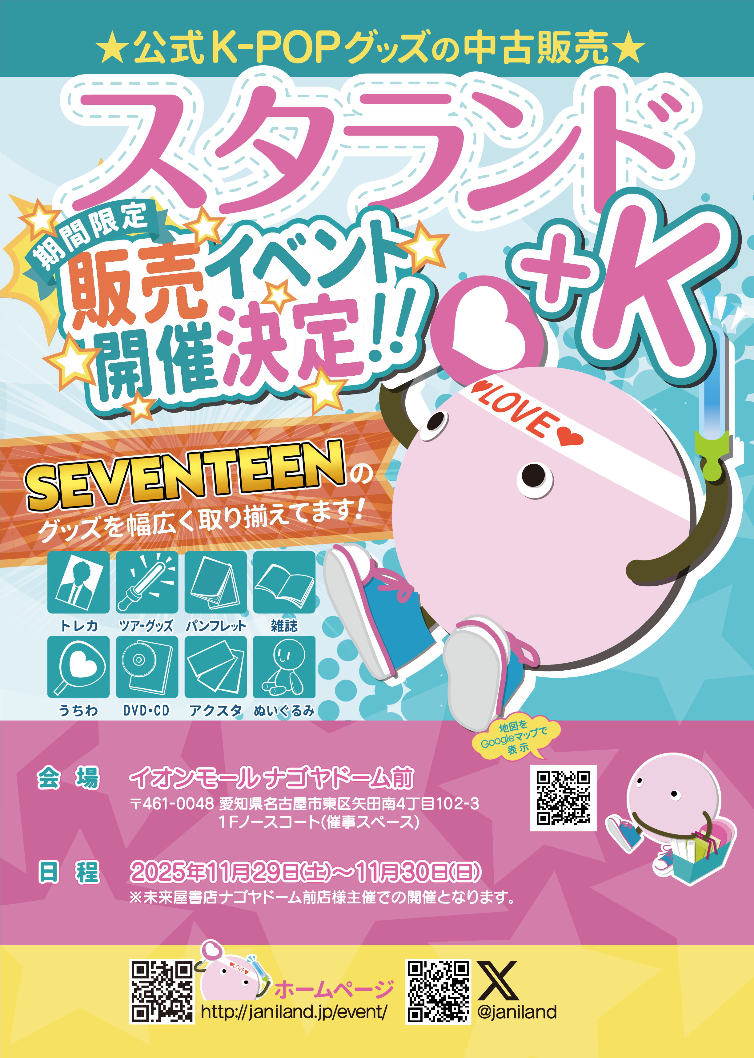 イオンモール ナゴヤドーム前(名古屋市)でのK-POPグッズ販売イベントが決定いたしました♪