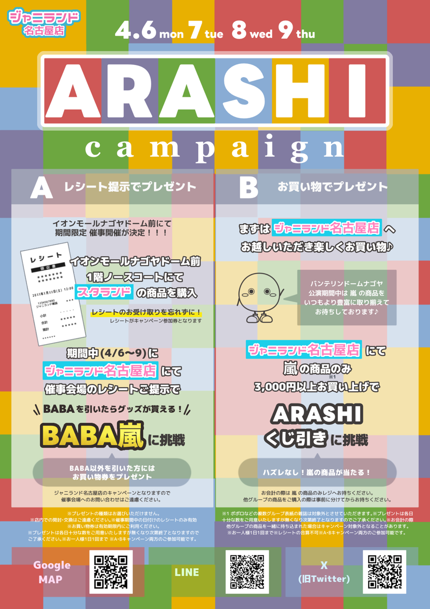 イオンモール ナゴヤドーム前(名古屋市)でのジャニーズグッズ販売イベントが決定いたしました♪