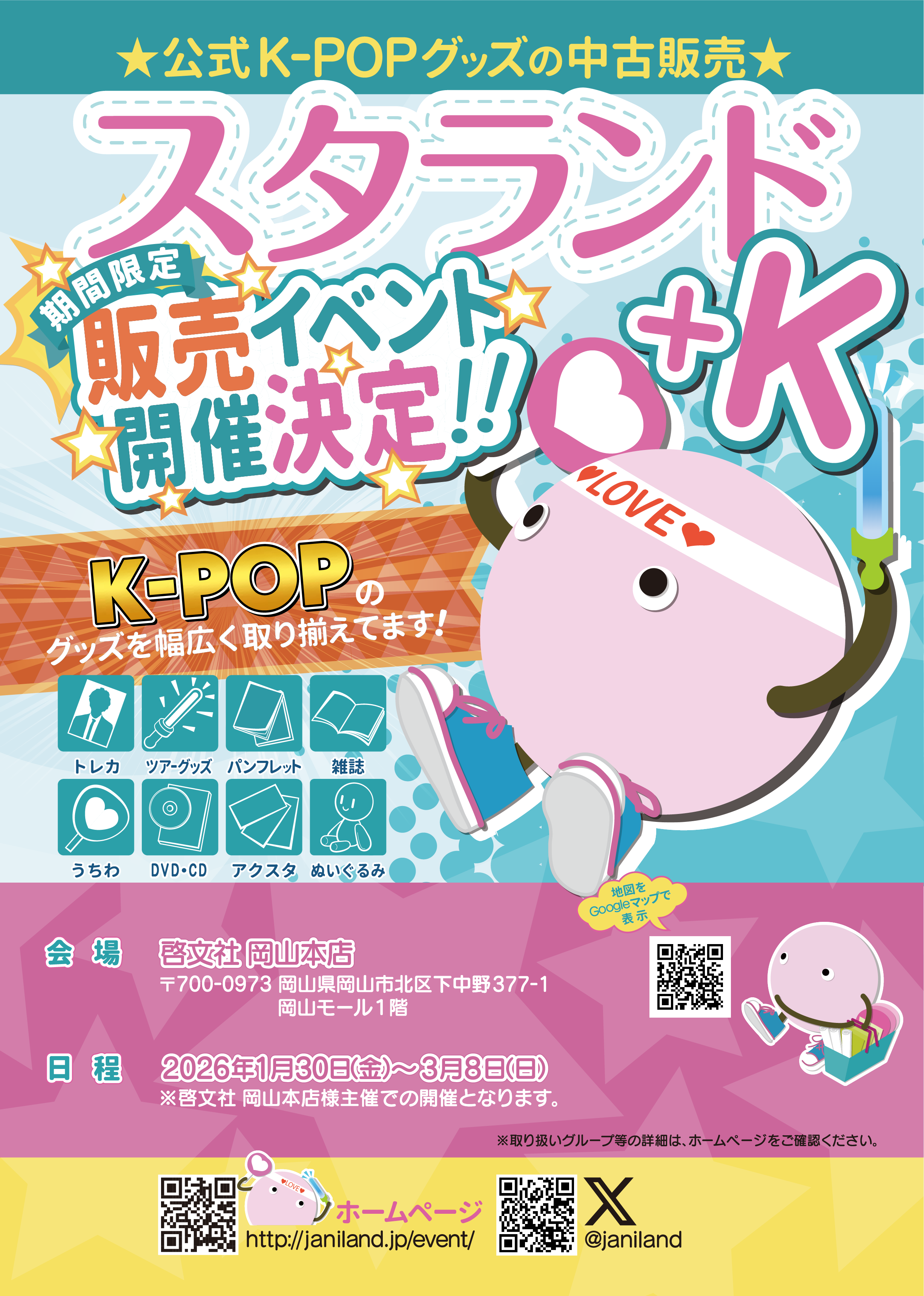 2026年1月30日(金)から3月8日(日)までの約1ヶ月半、啓文社 岡山本店様主催での開催となります。