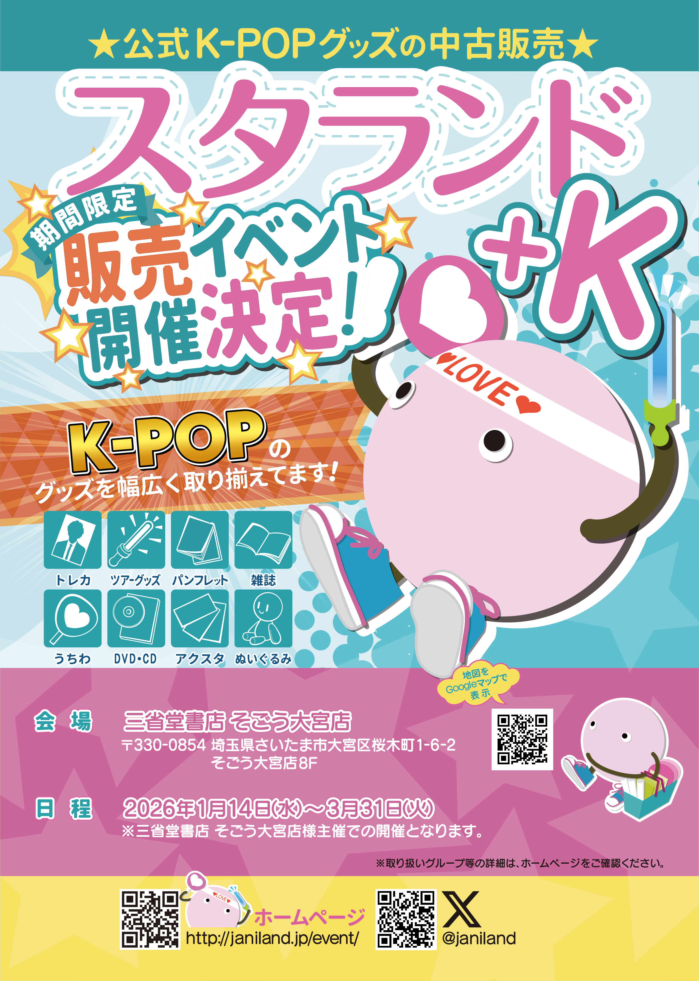 三省堂書店 そごう大宮店(さいたま市)でのジャニーズグッズ&K-POPグッズの販売イベントが決定いたしました♪