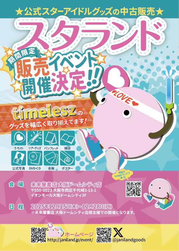 2025年12月25日(木)から12月28日(日)までの4日間、未来屋書店 大阪ドームシティ店様主催での開催となります。