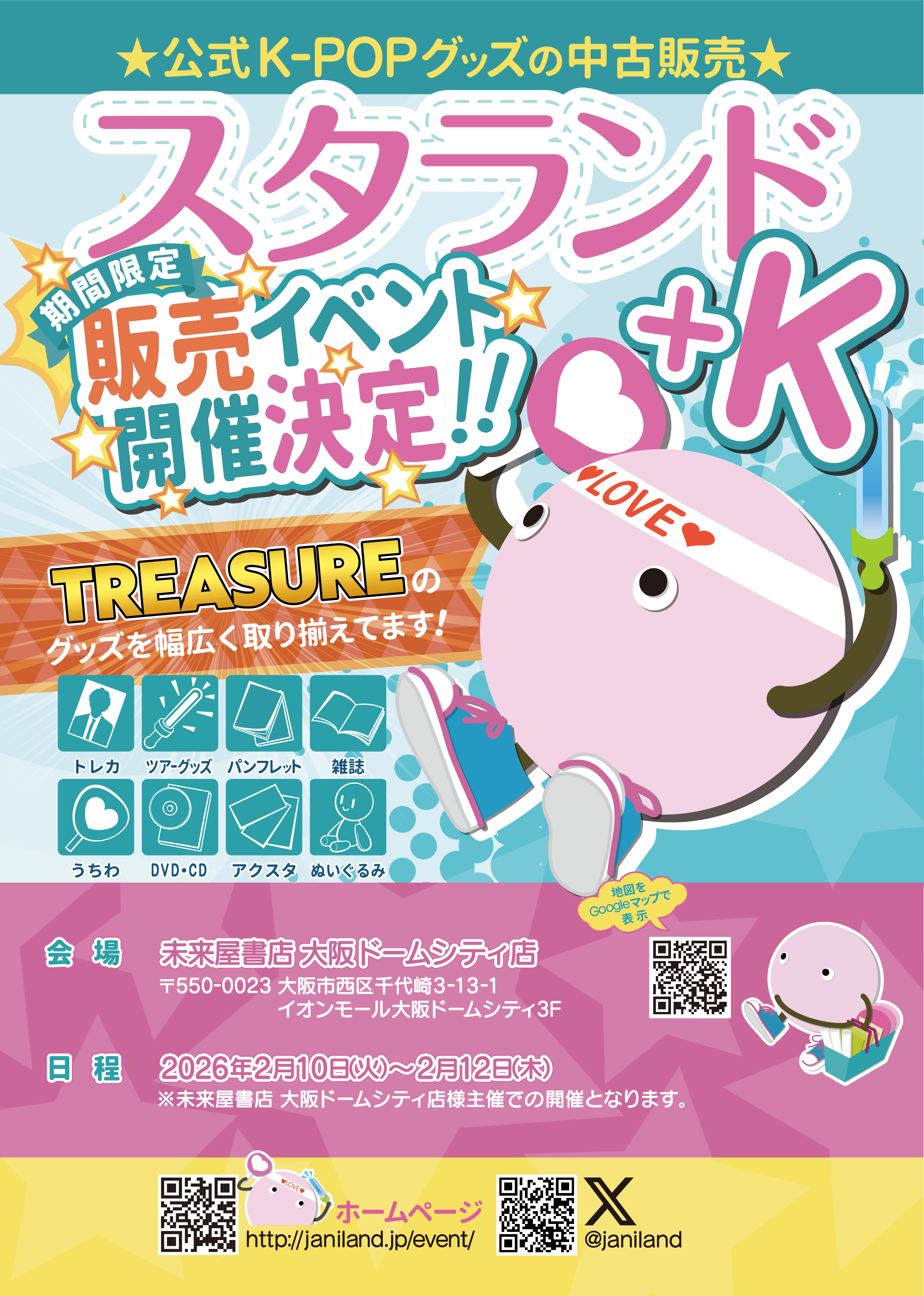未来屋書店 大阪ドームシティ店(大阪市西区)でのK-POPグッズ販売イベントが決定いたしました♪